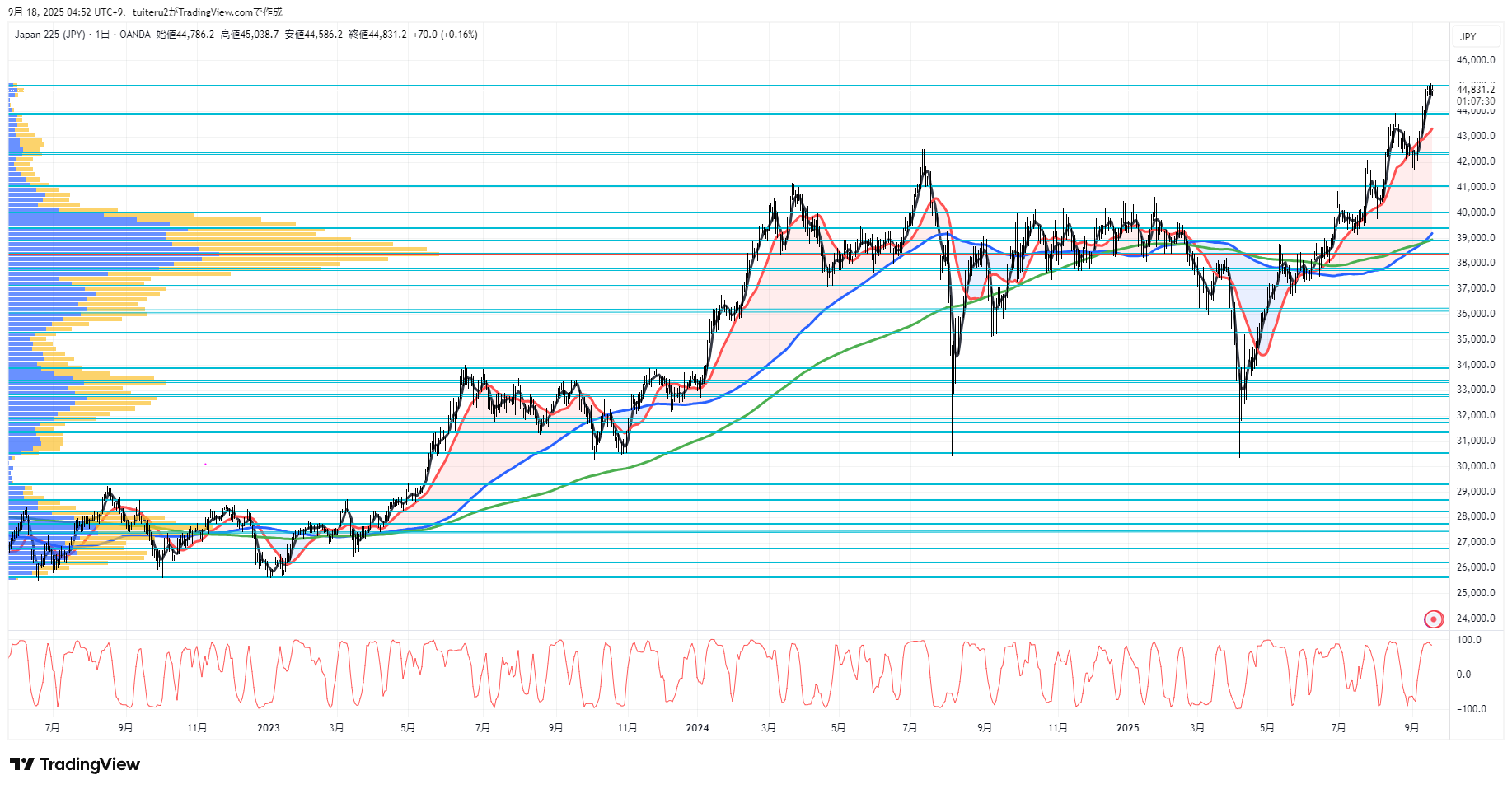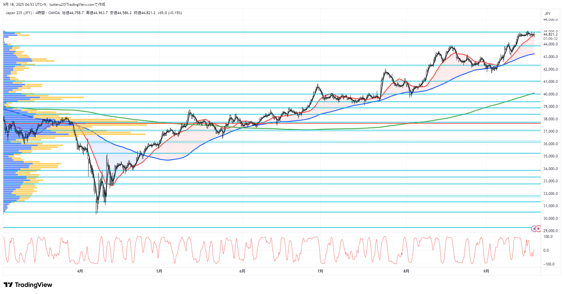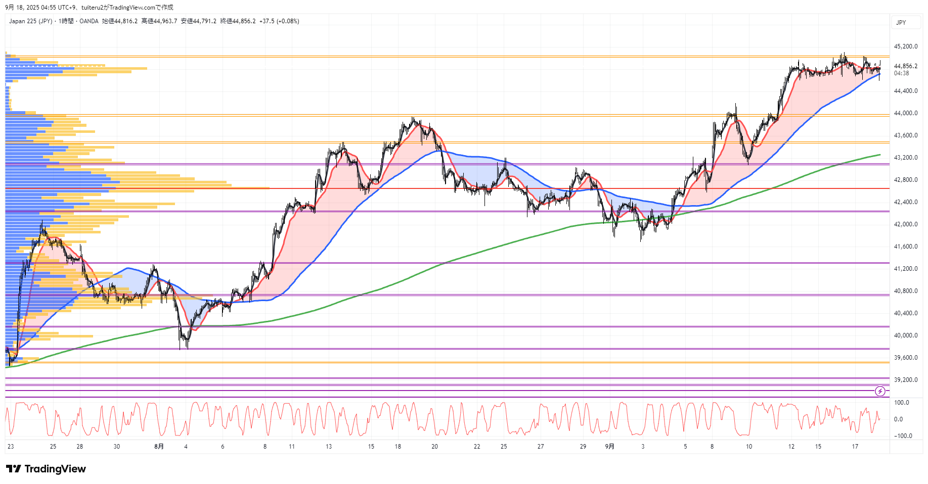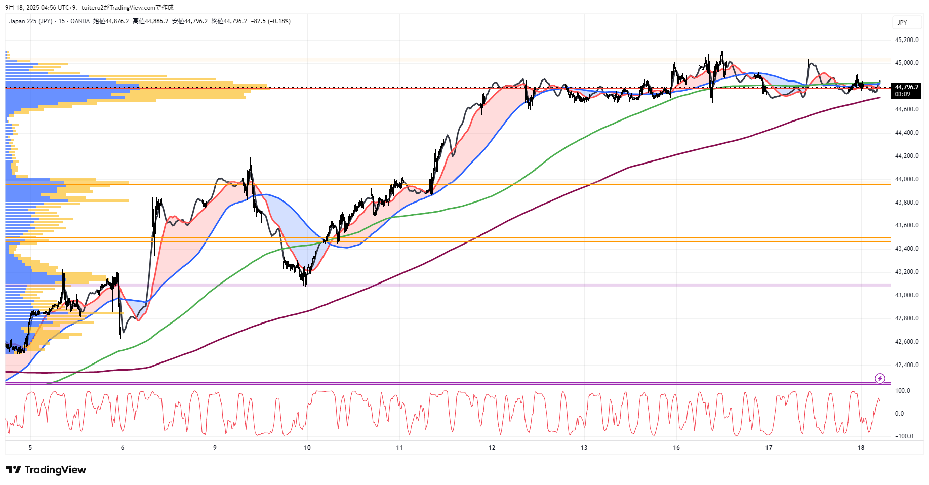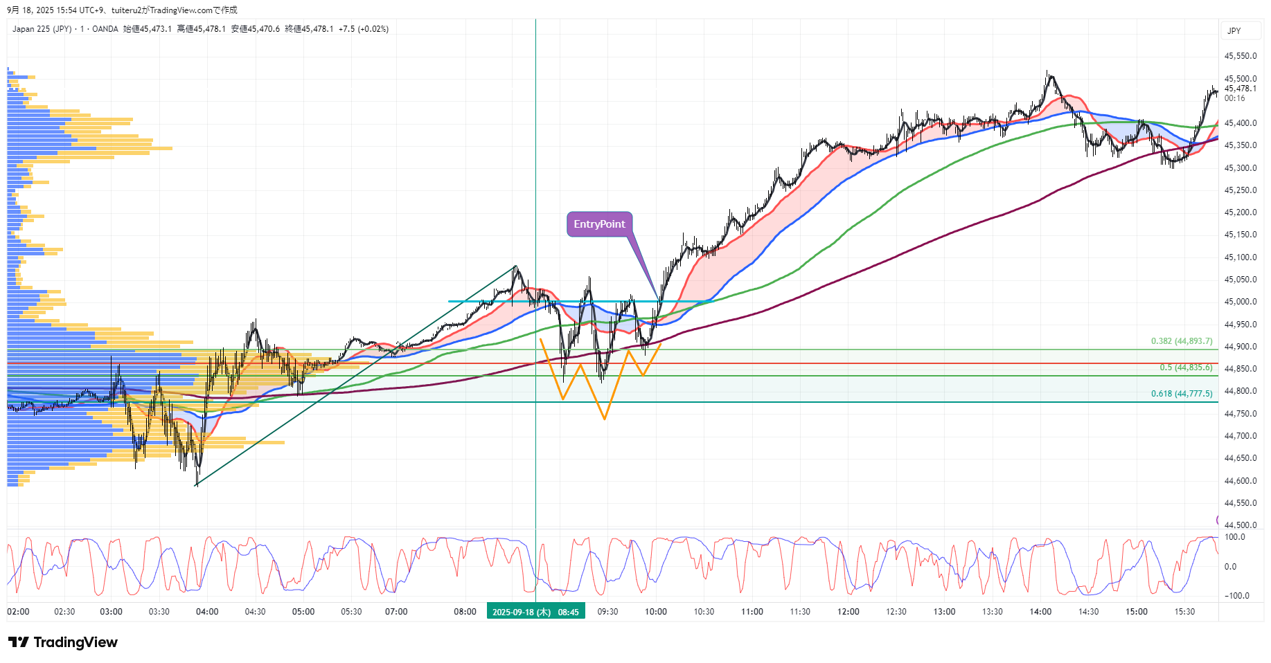 OANDAの『JP225』の 朝5:30時点 の 環境認識 と エントリーシナリオ です。