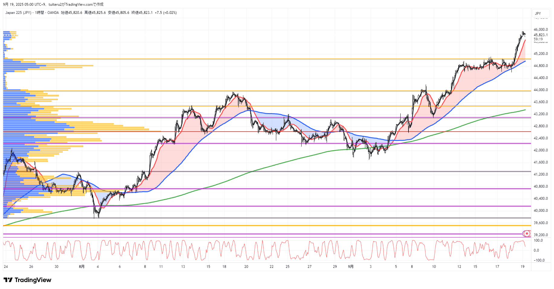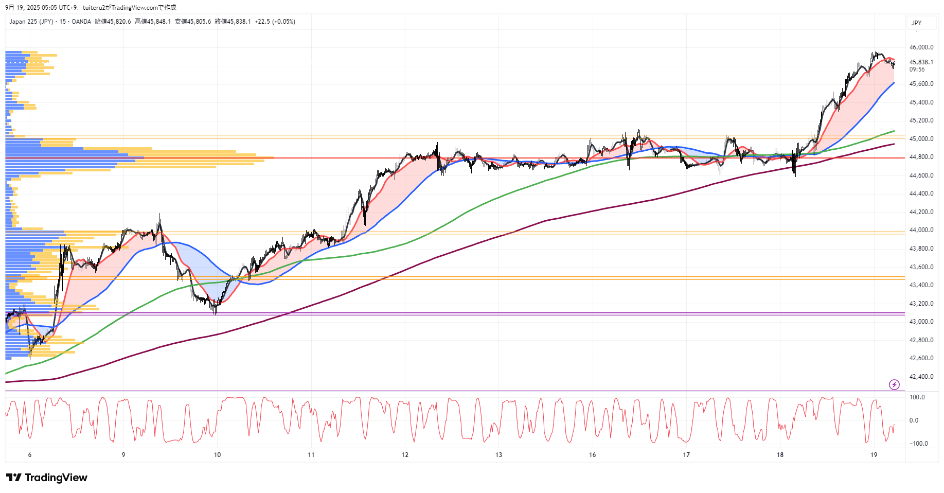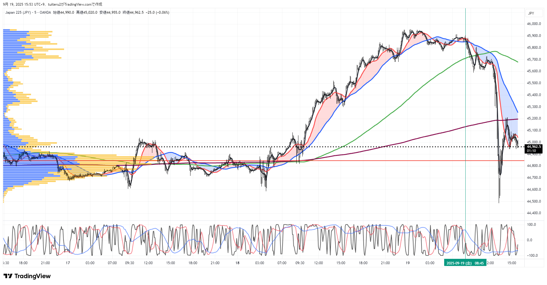 OANDAの『JP225』の 朝5:30時点 の 環境認識 と エントリーシナリオ です。
