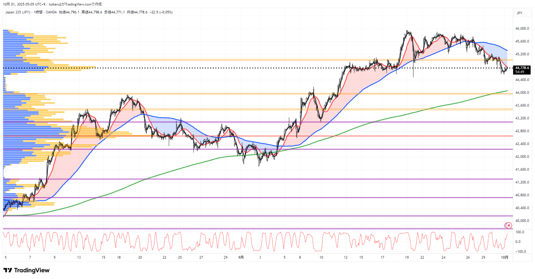 OANDAの『JP225』の 朝5:30時点 の 環境認識 と エントリーシナリオ です。