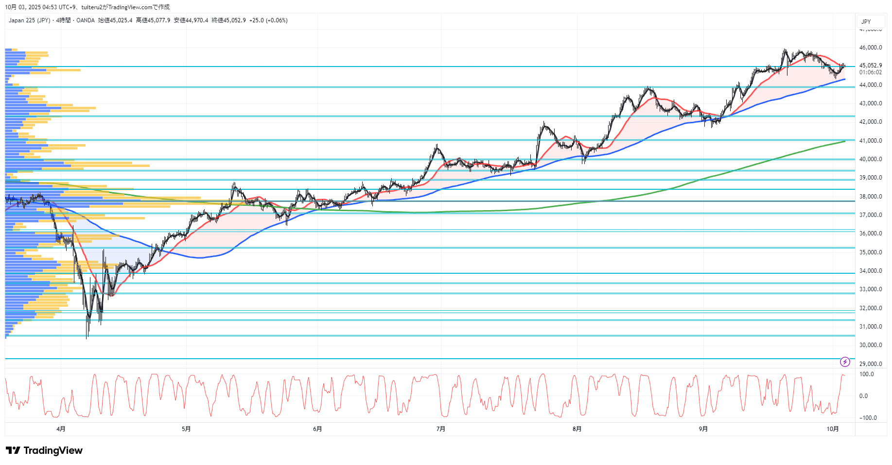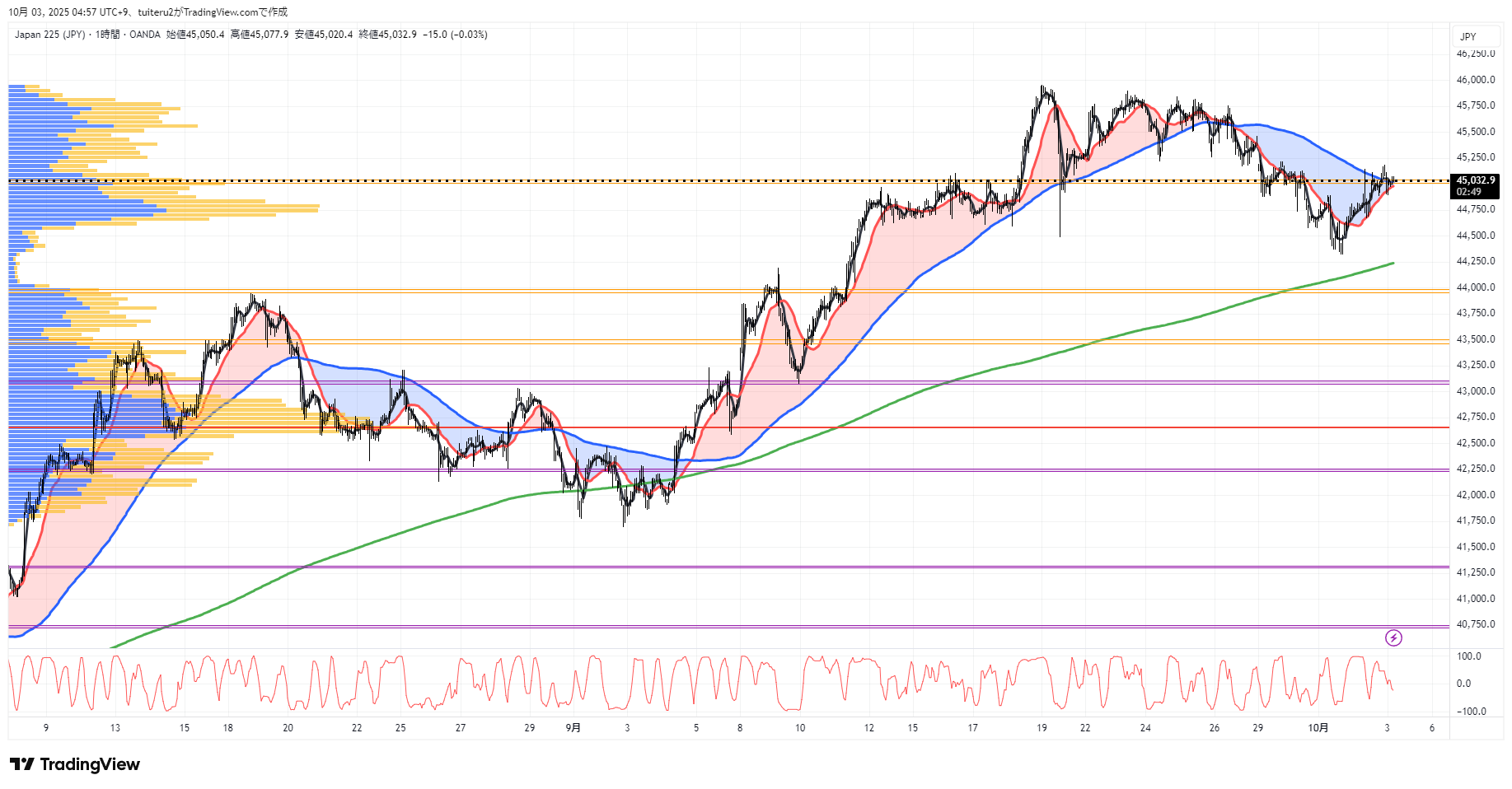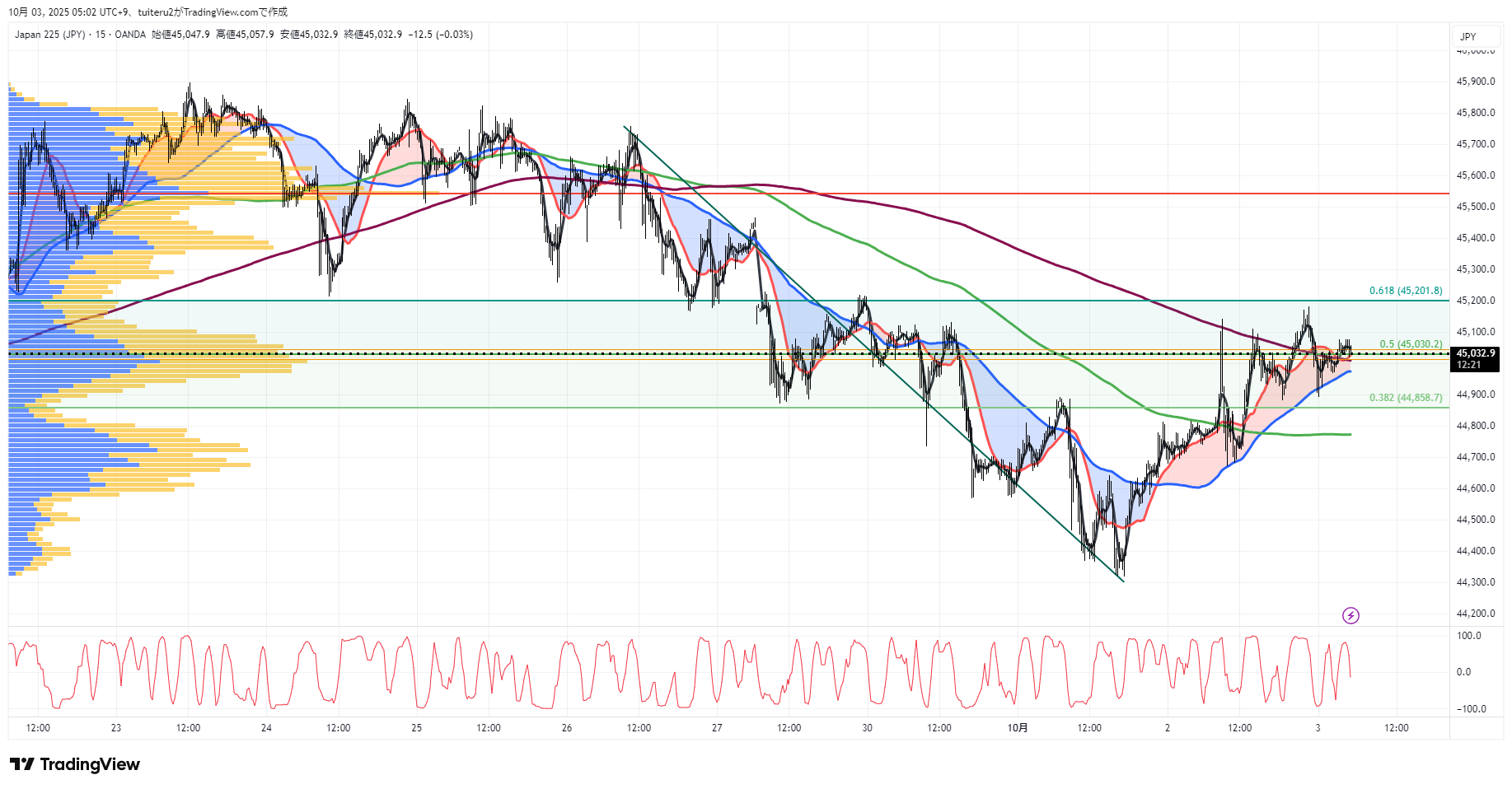 OANDAの『JP225』の 朝5:30時点 の 環境認識 と エントリーシナリオ です。
