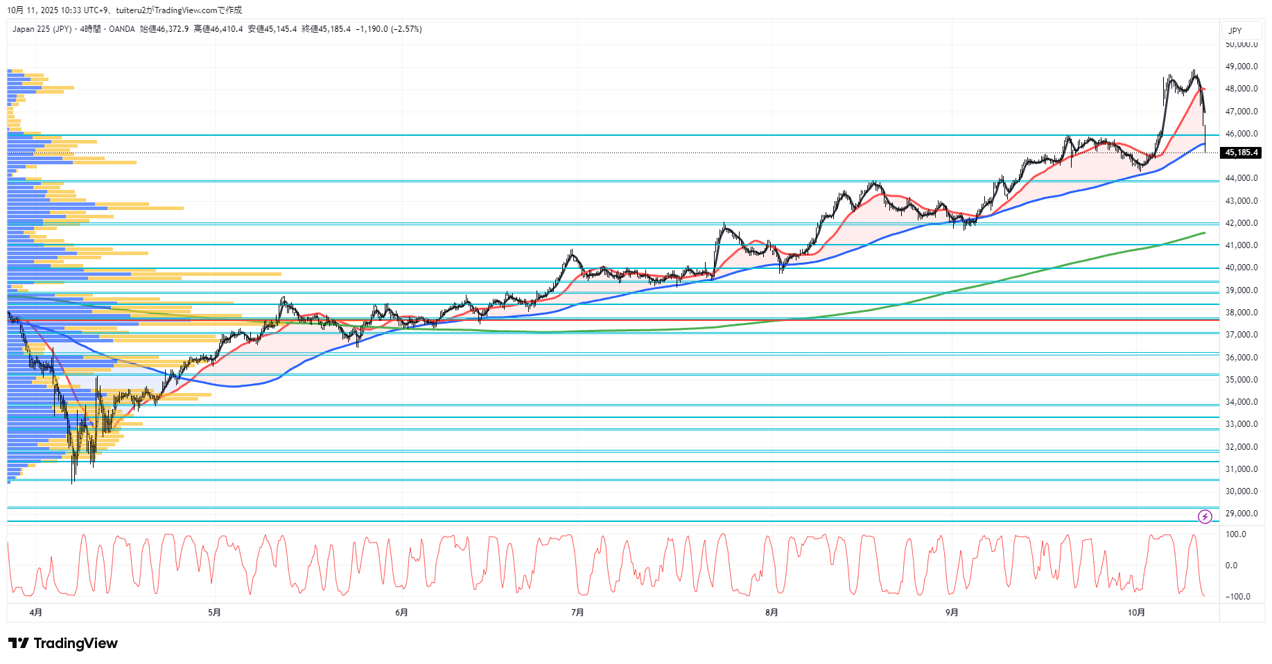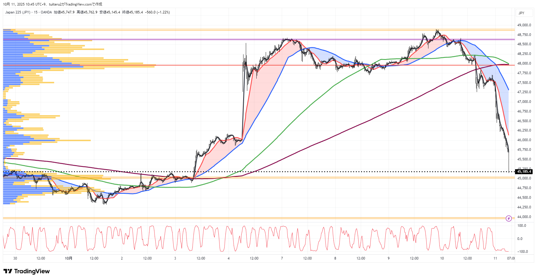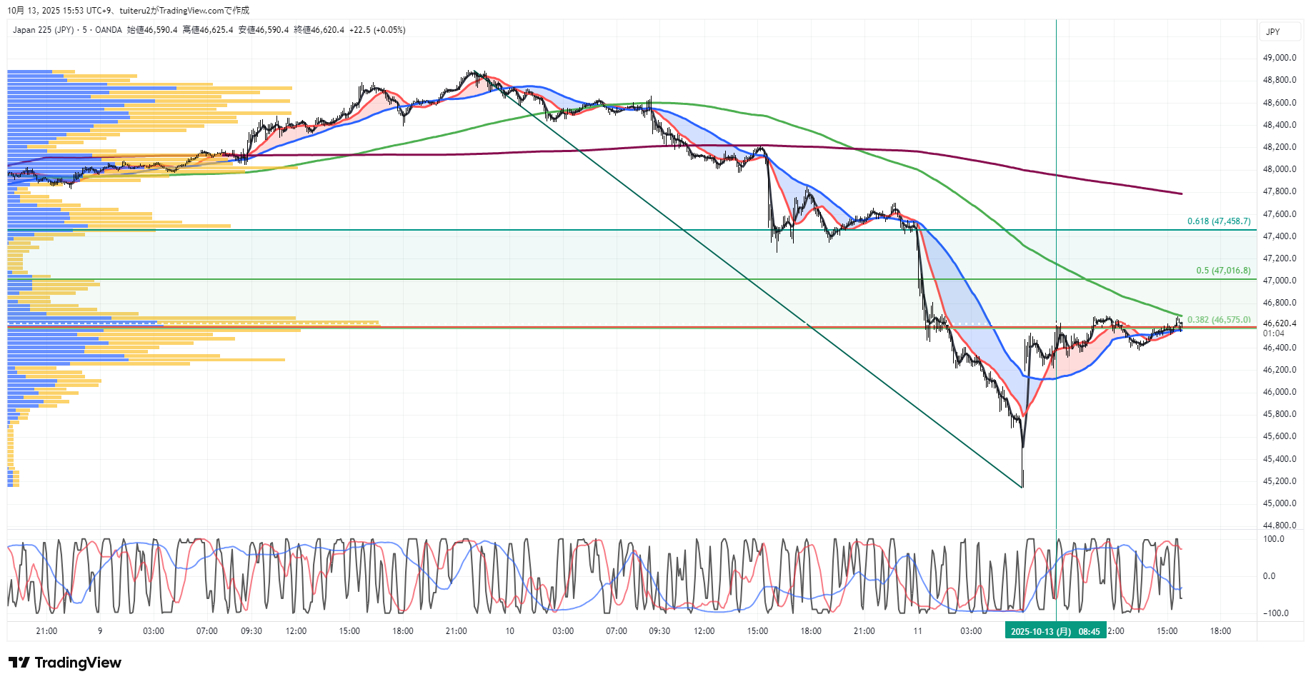 OANDAの『JP225』の 朝5:30時点 の 環境認識 と エントリーシナリオ です。