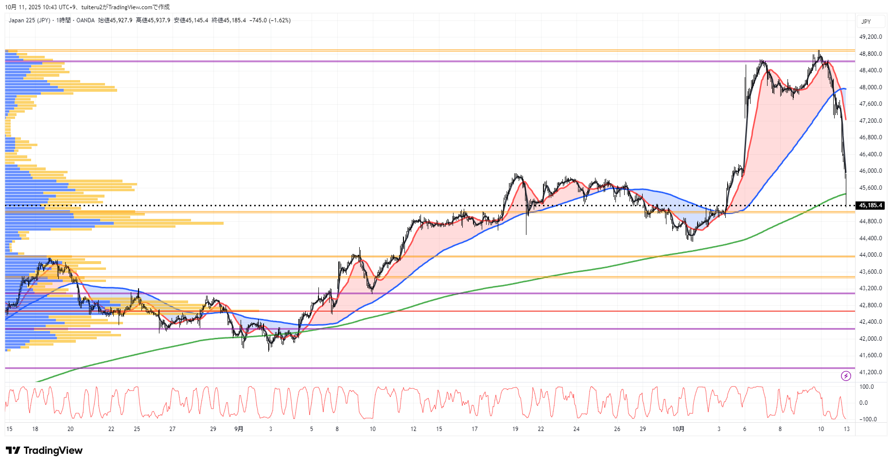 ほぼ下降パーフェクトオーダーです。売り目線でエントリーの根拠を探します。