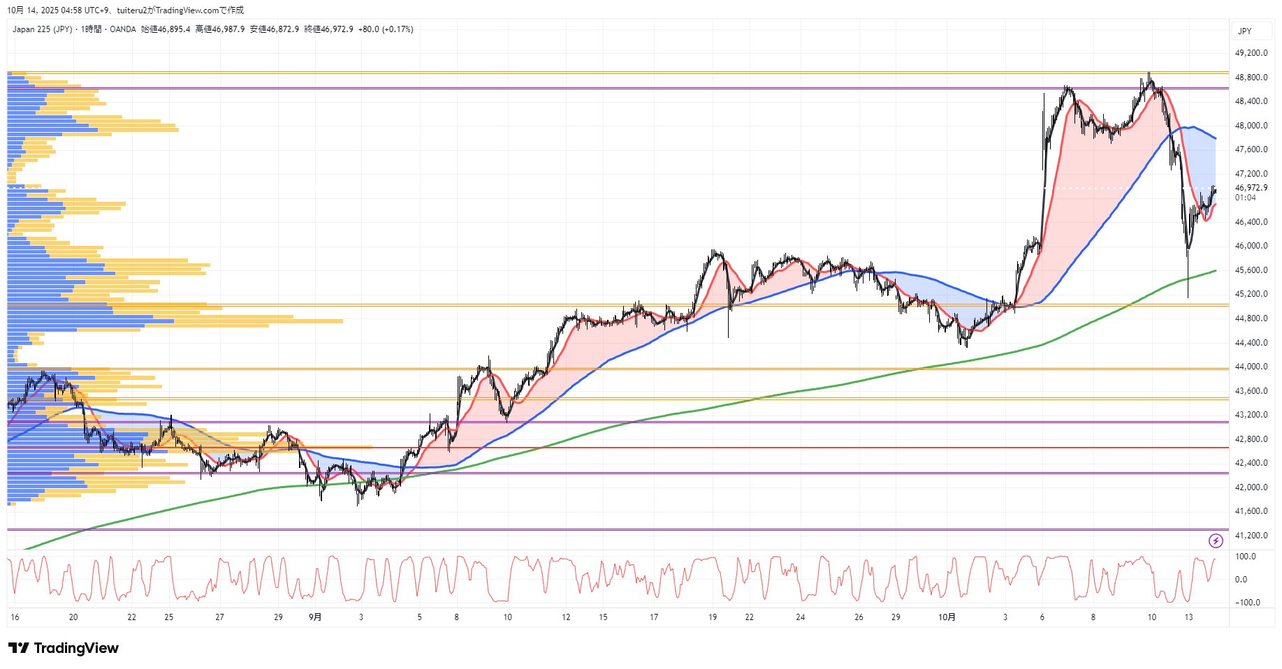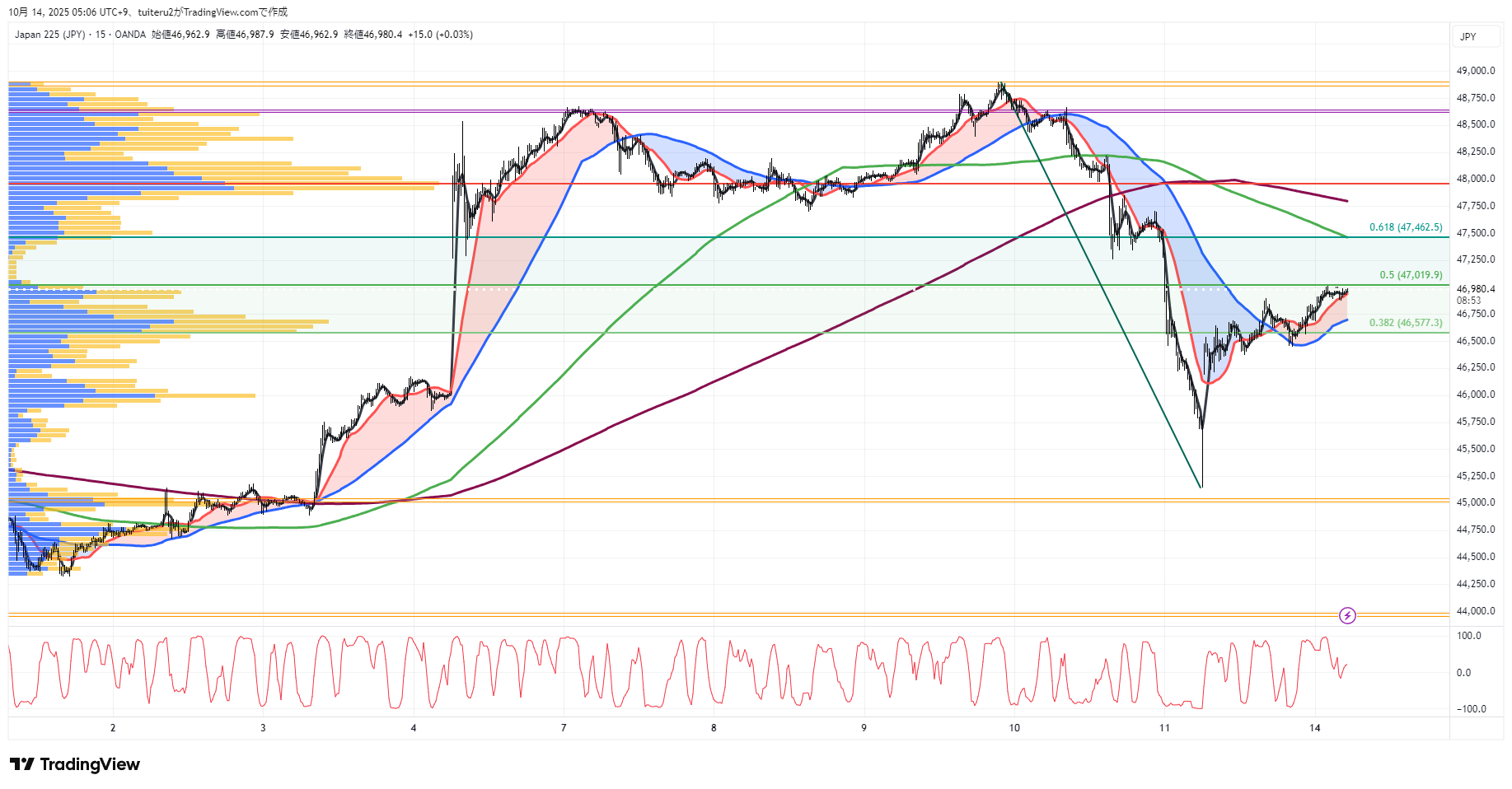 OANDAの『JP225』の 朝5:30時点 の 環境認識 と エントリーシナリオ です。