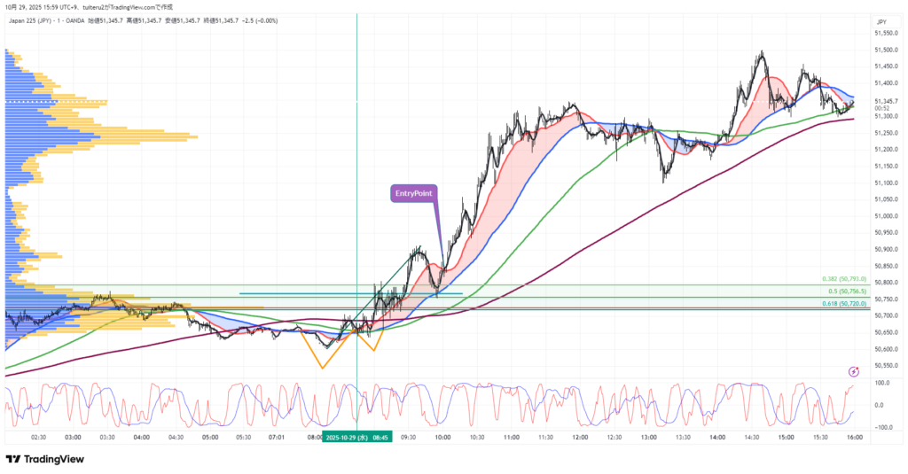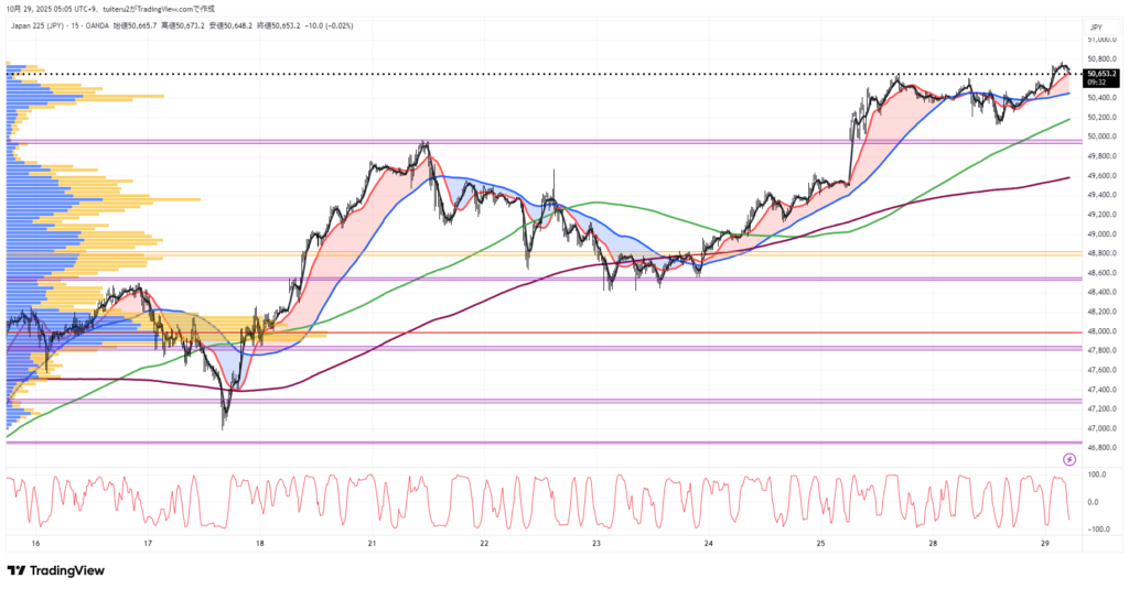 OANDAの『JP225』の 朝5:30時点 の 環境認識 と エントリーシナリオ です。