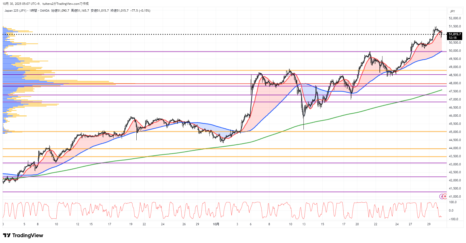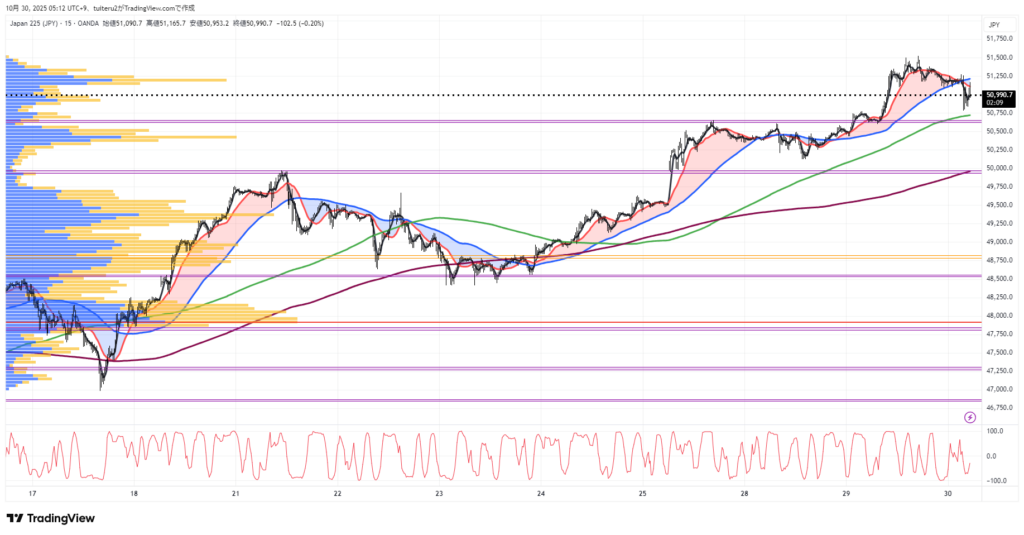 OANDAの『JP225』の 朝5:30時点 の 環境認識 と エントリーシナリオ です。