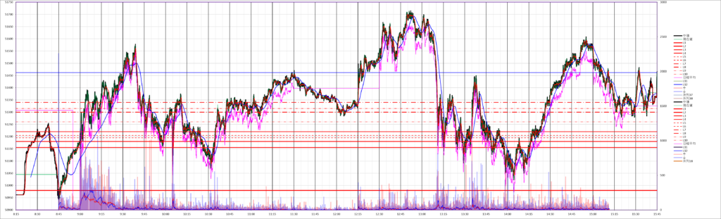 今日の225先物miniは、荒れた値幅の広いレンジ相場となりました。