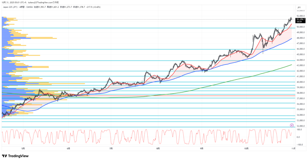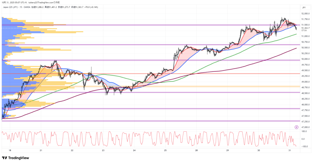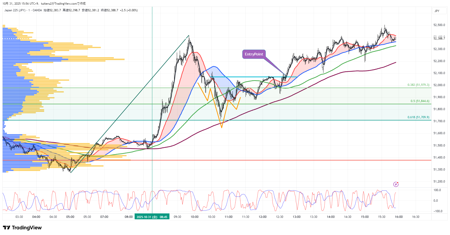 OANDAの『JP225』の 朝5:30時点 の 環境認識 と エントリーシナリオ です。