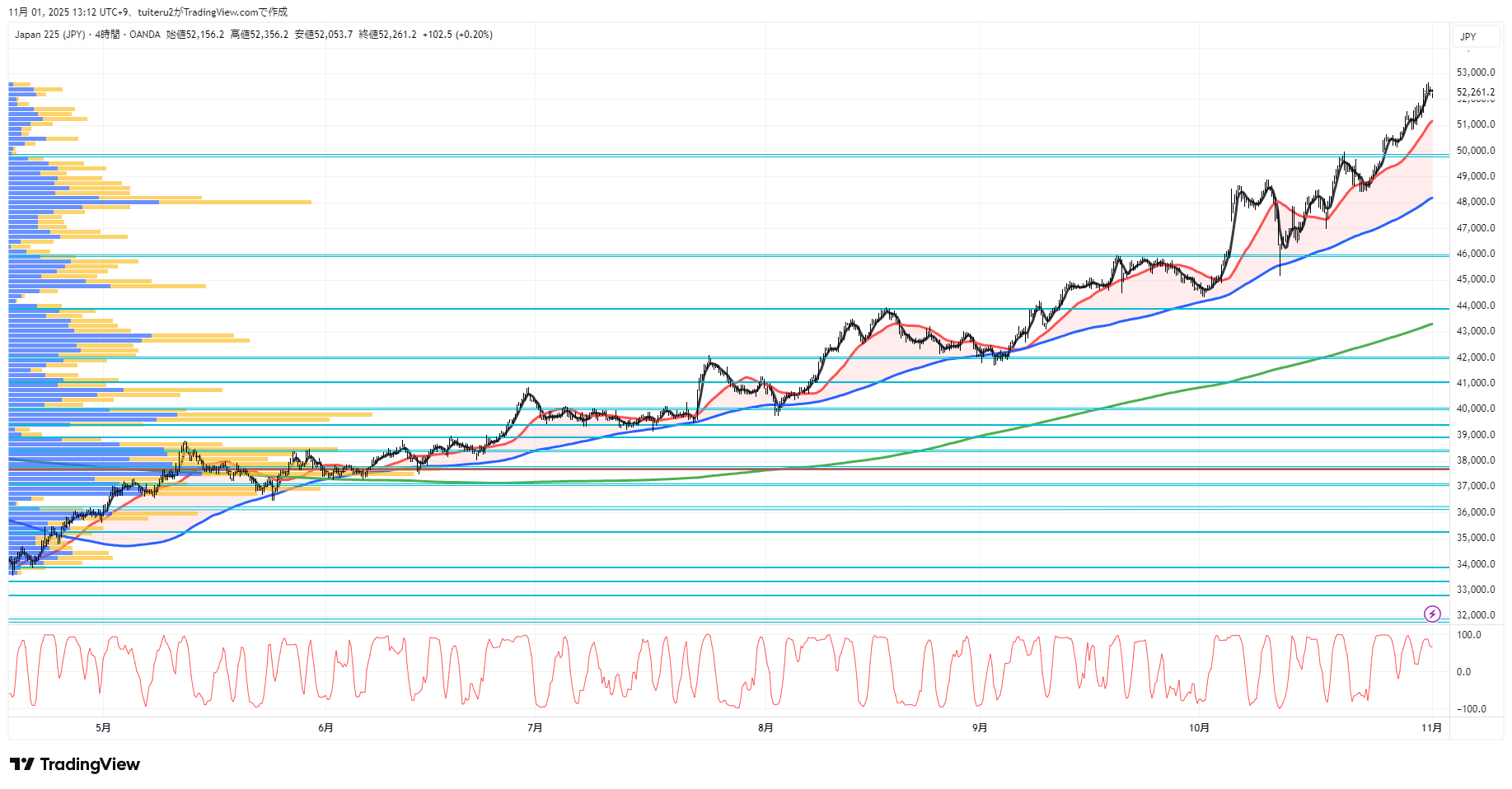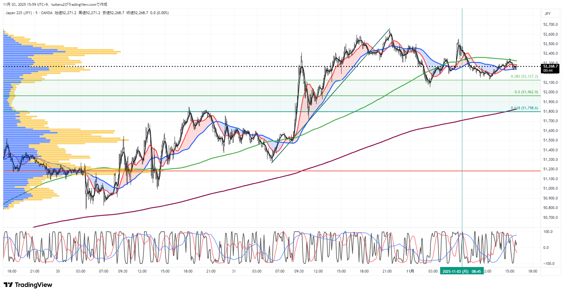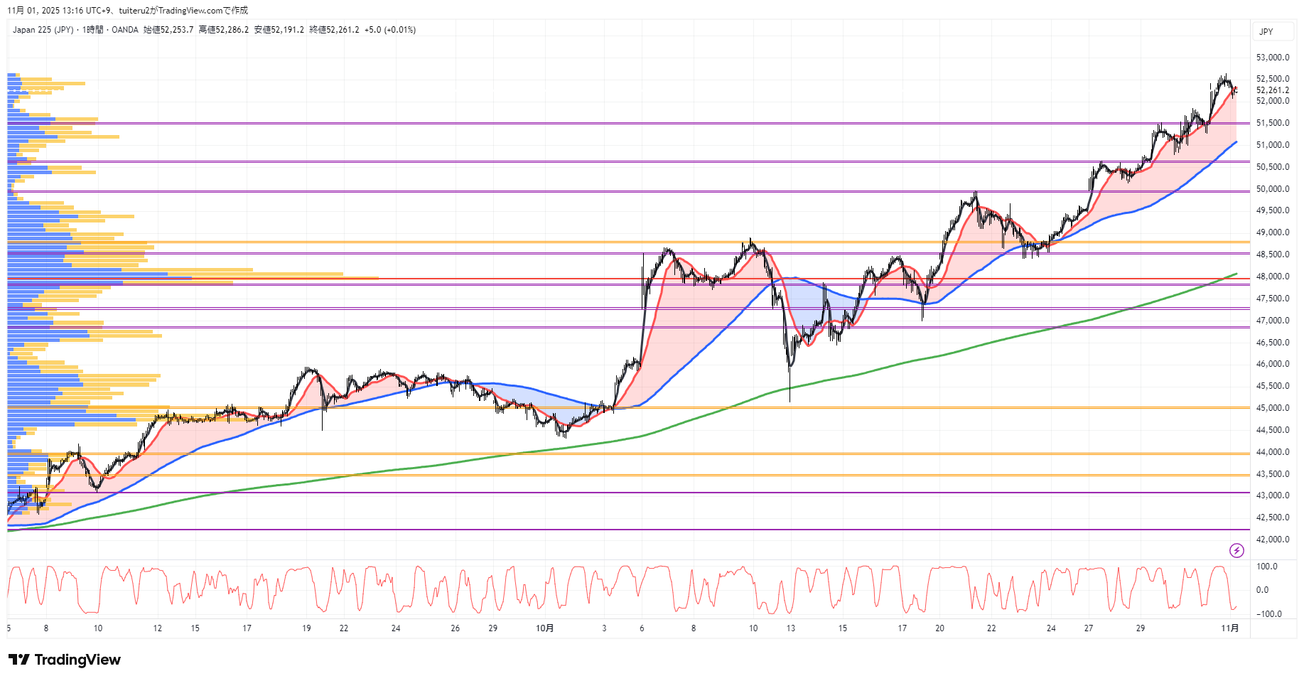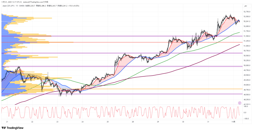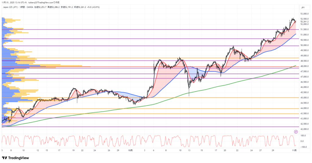 OANDAの『JP225』の 朝5:30時点 の 環境認識 と エントリーシナリオ です。
