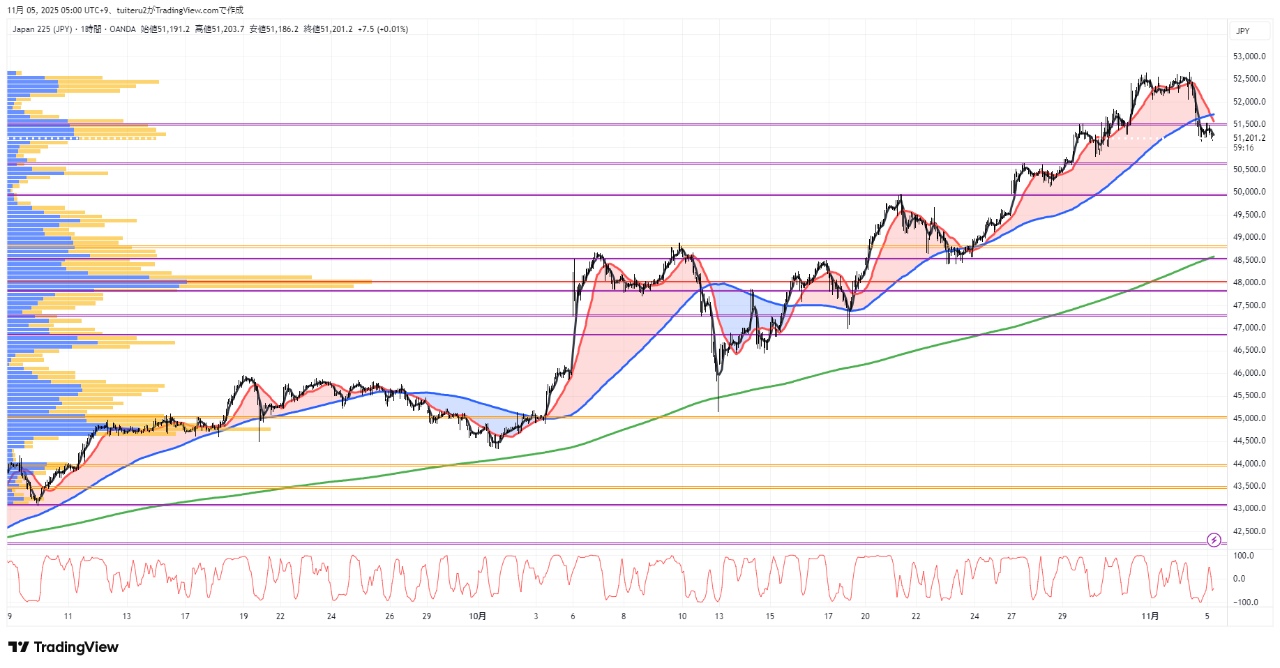 OANDAの『JP225』の 朝5:30時点 の 環境認識 と エントリーシナリオ です。