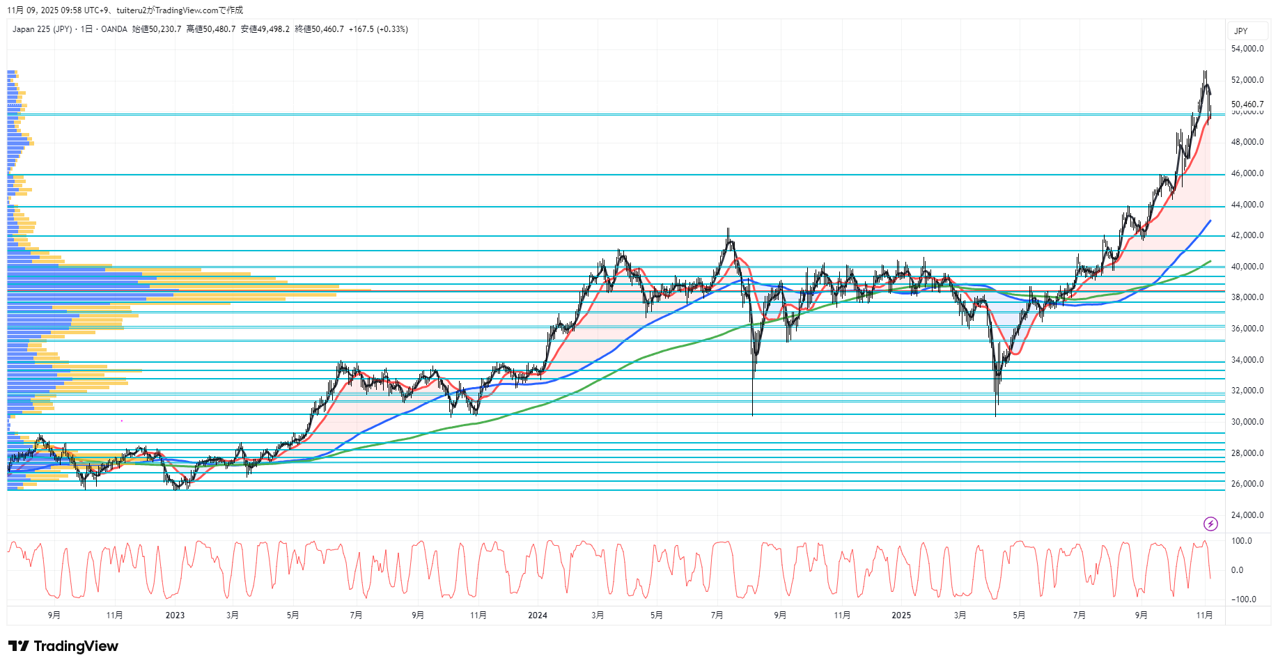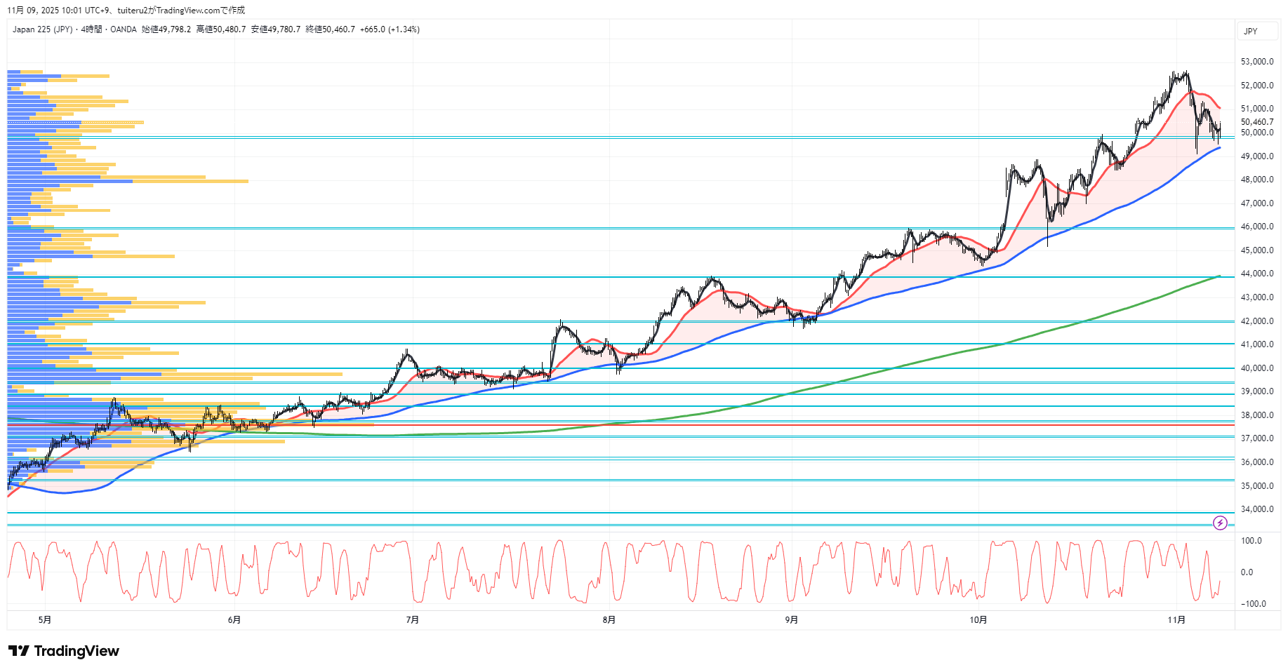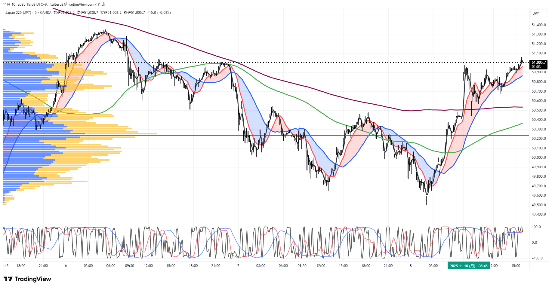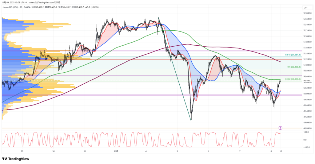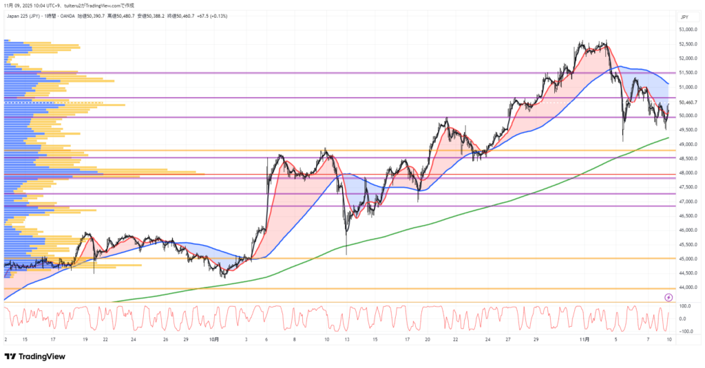 OANDAの『JP225』の 朝5:30時点 の 環境認識 と エントリーシナリオ です。