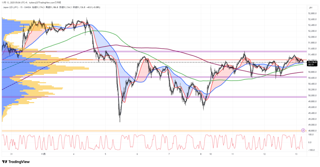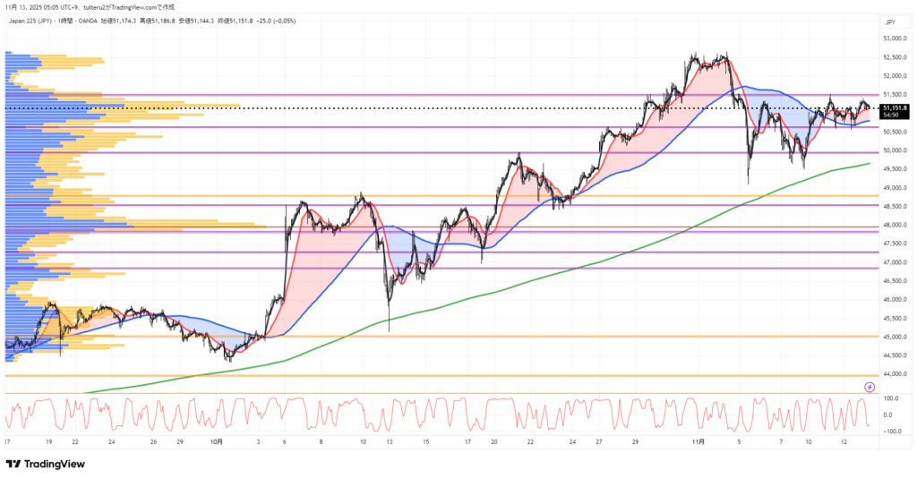 OANDAの『JP225』の 朝5:30時点 の 環境認識 と エントリーシナリオ です。