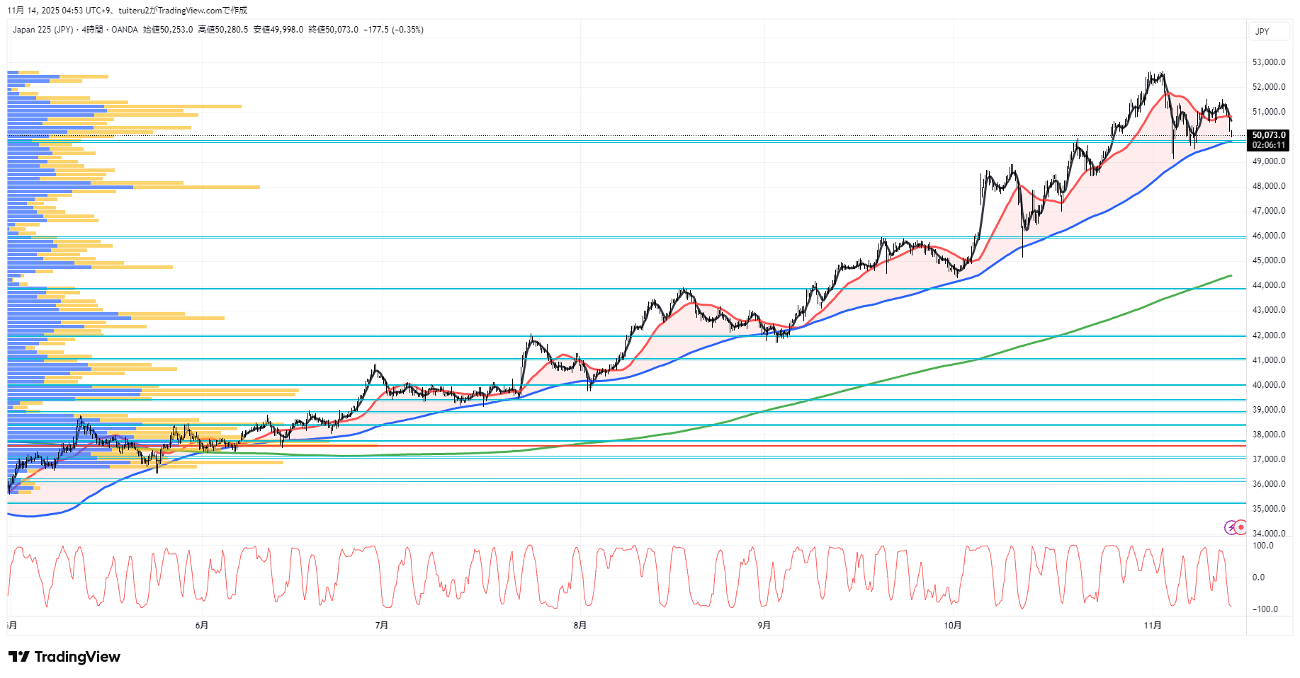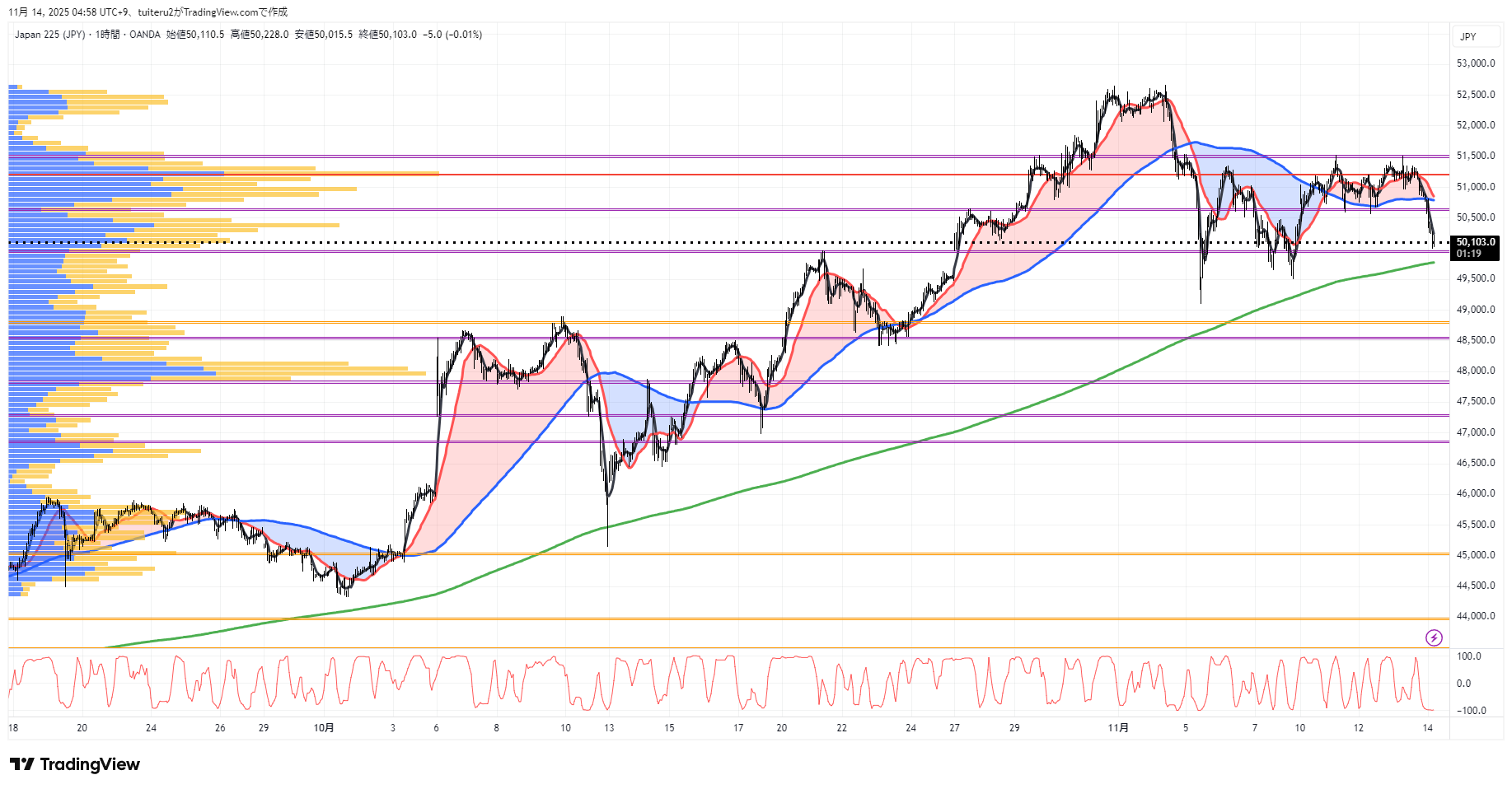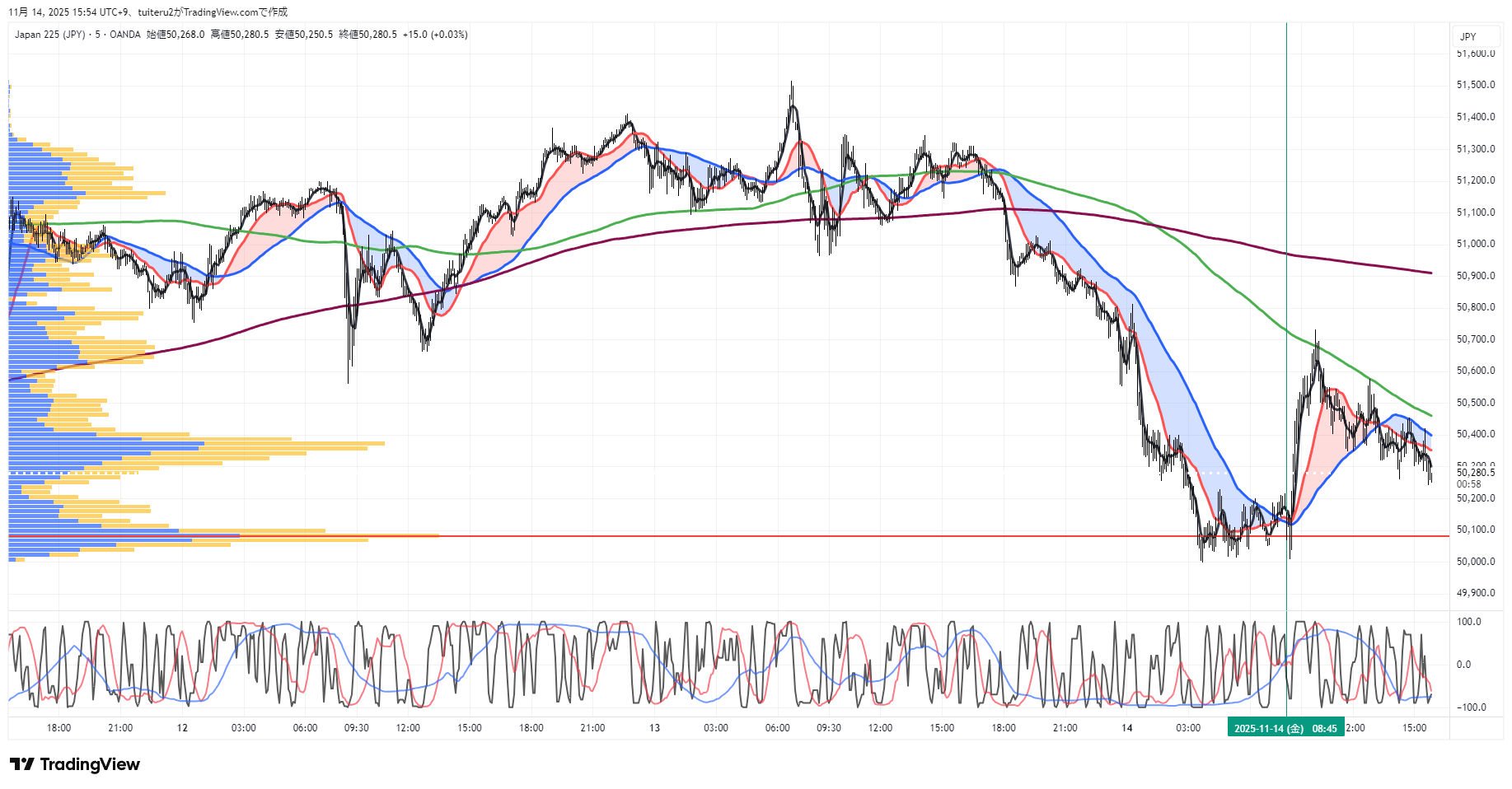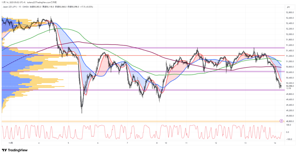 OANDAの『JP225』の 朝5:30時点 の 環境認識 と エントリーシナリオ です。