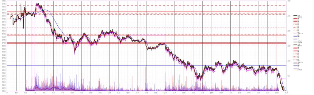 今日の225先物miniは、大幅下落トレンドデイになりました。