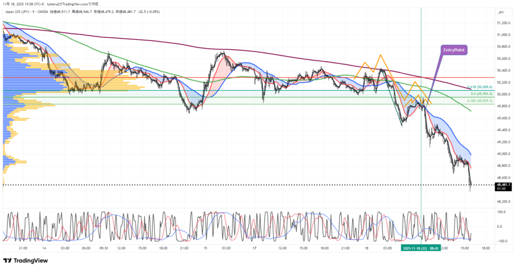 OANDAの『JP225』の 朝5:30時点 の 環境認識 と エントリーシナリオ です。