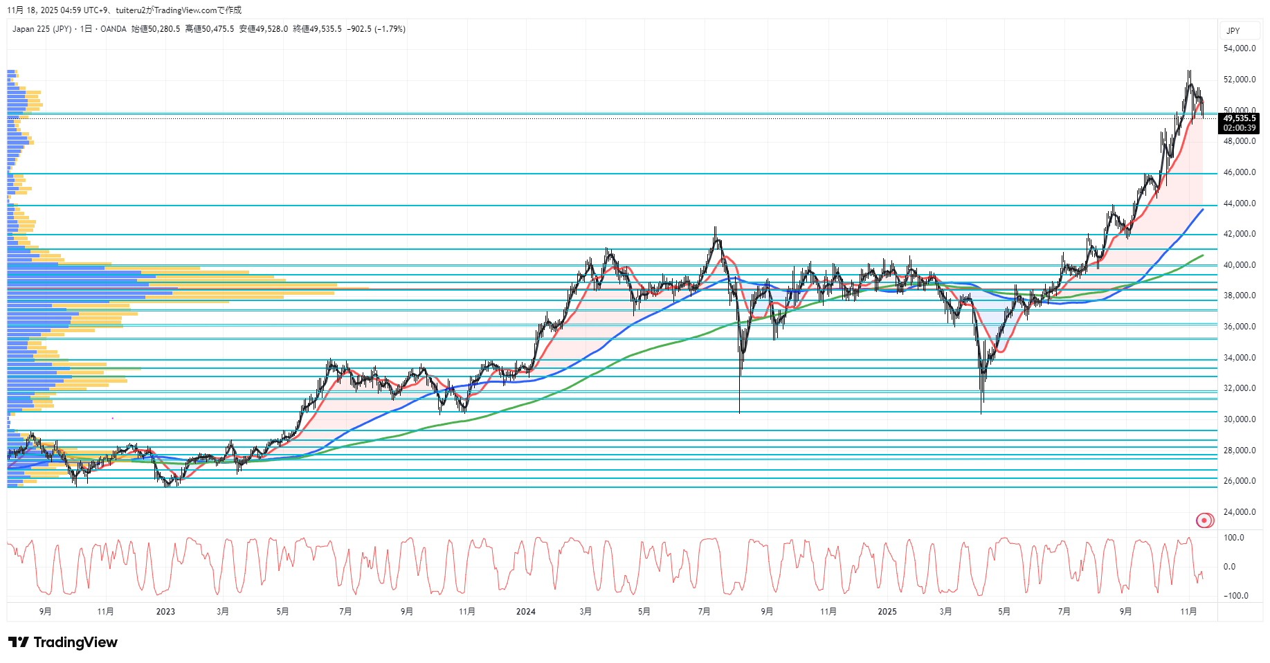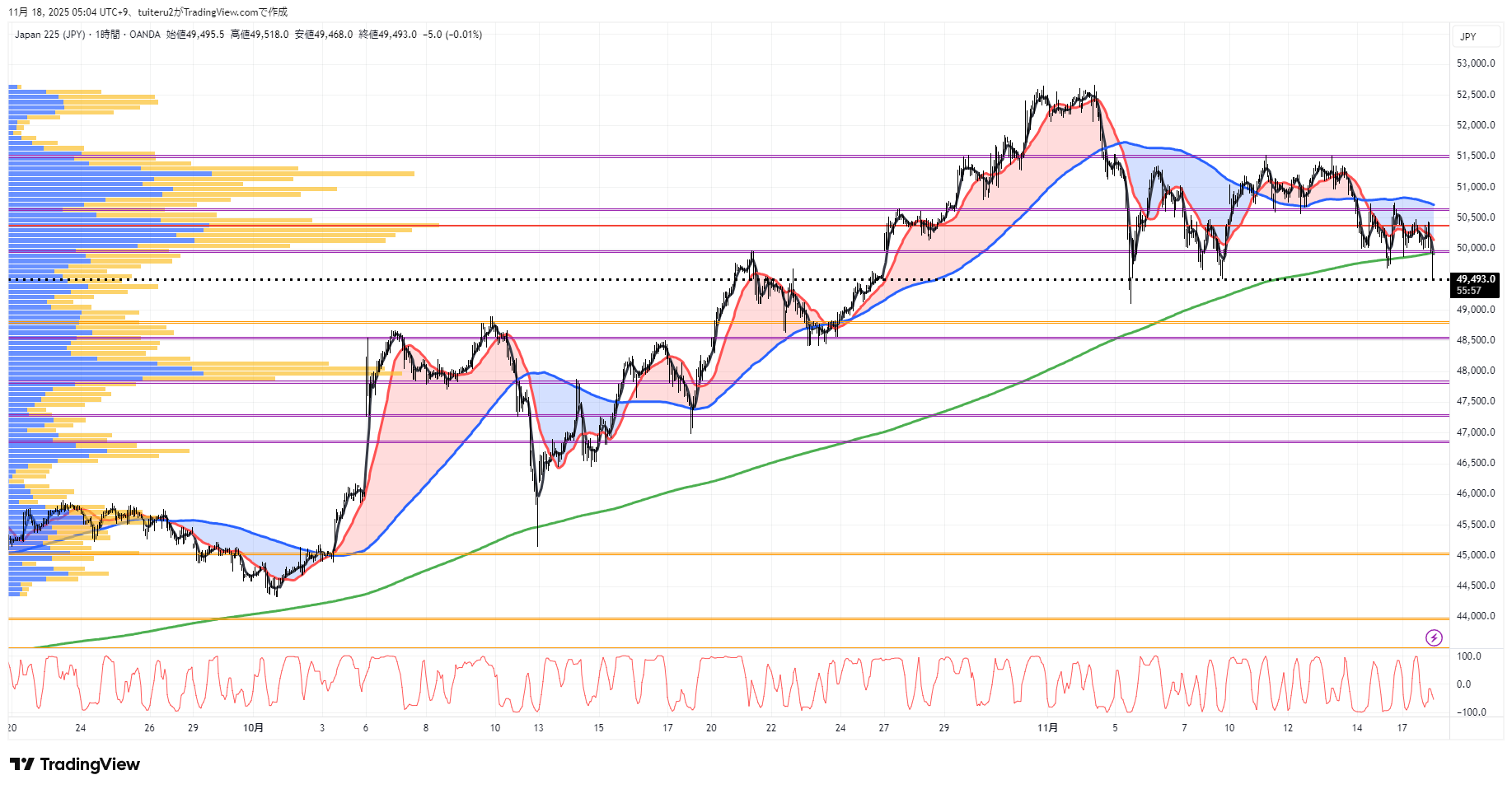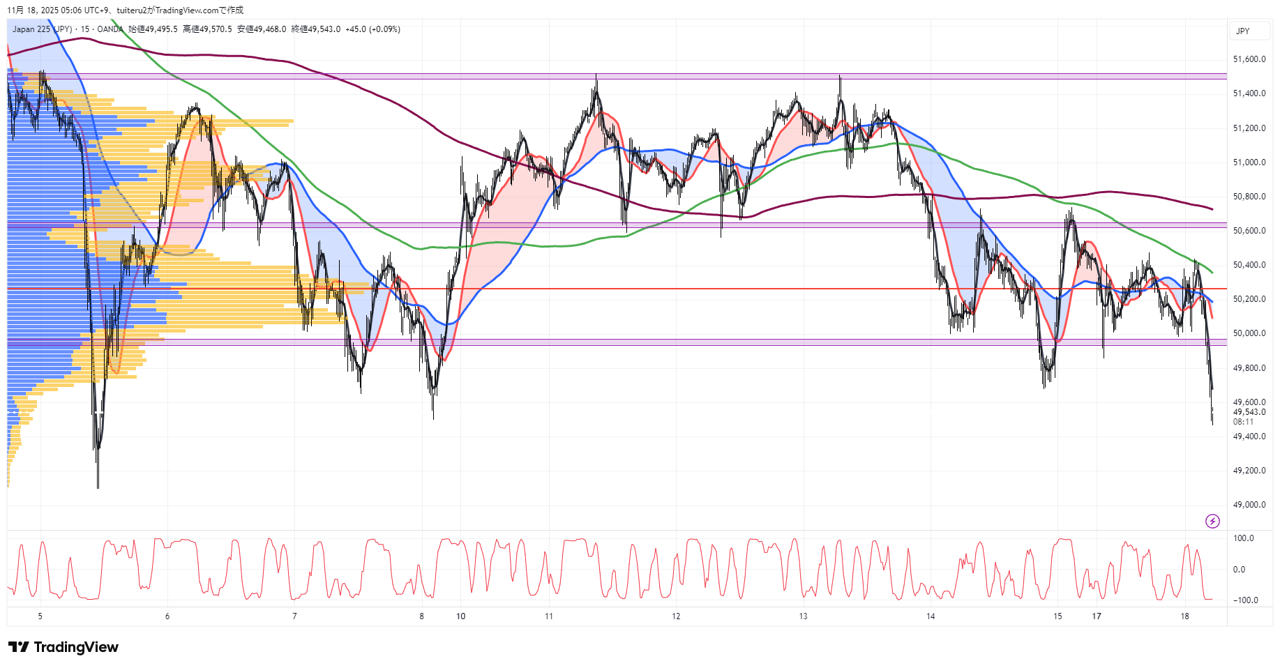 OANDAの『JP225』の 朝5:30時点 の 環境認識 と エントリーシナリオ です。