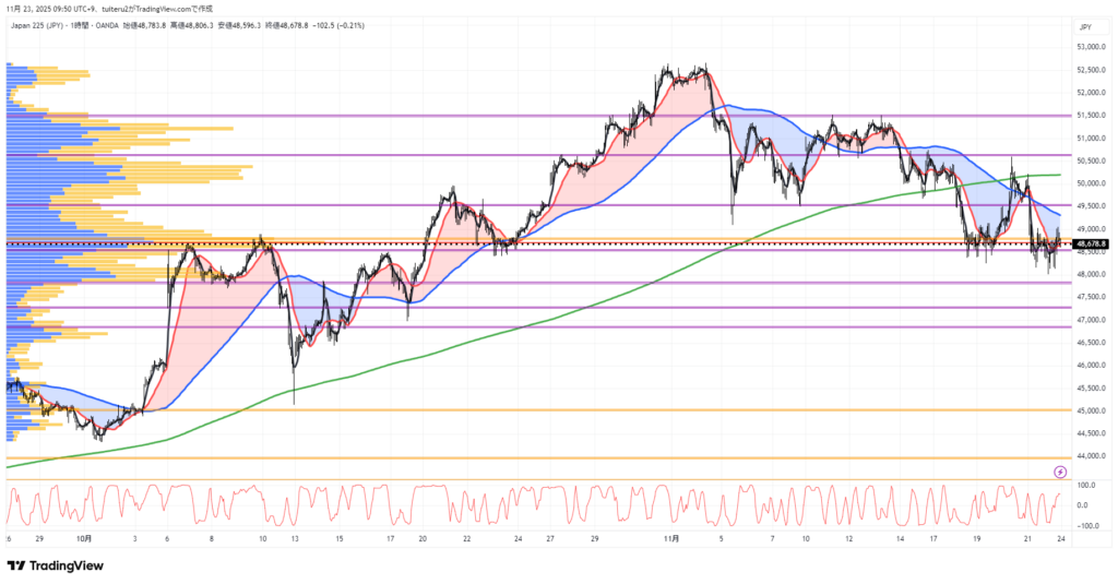 OANDAの『JP225』の 朝5:30時点 の 環境認識 と エントリーシナリオ です。