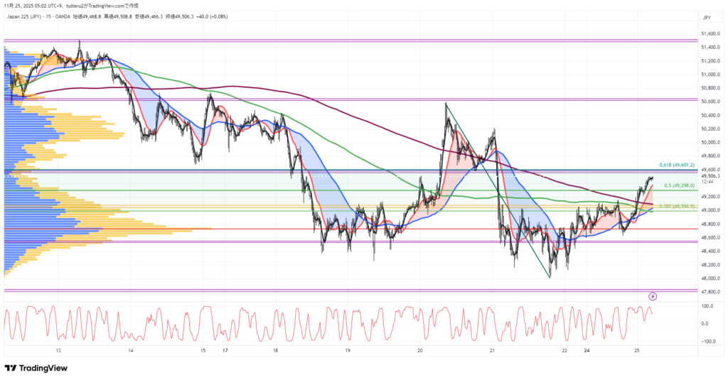 OANDAの『JP225』の 朝5:30時点 の 環境認識 と エントリーシナリオ です。