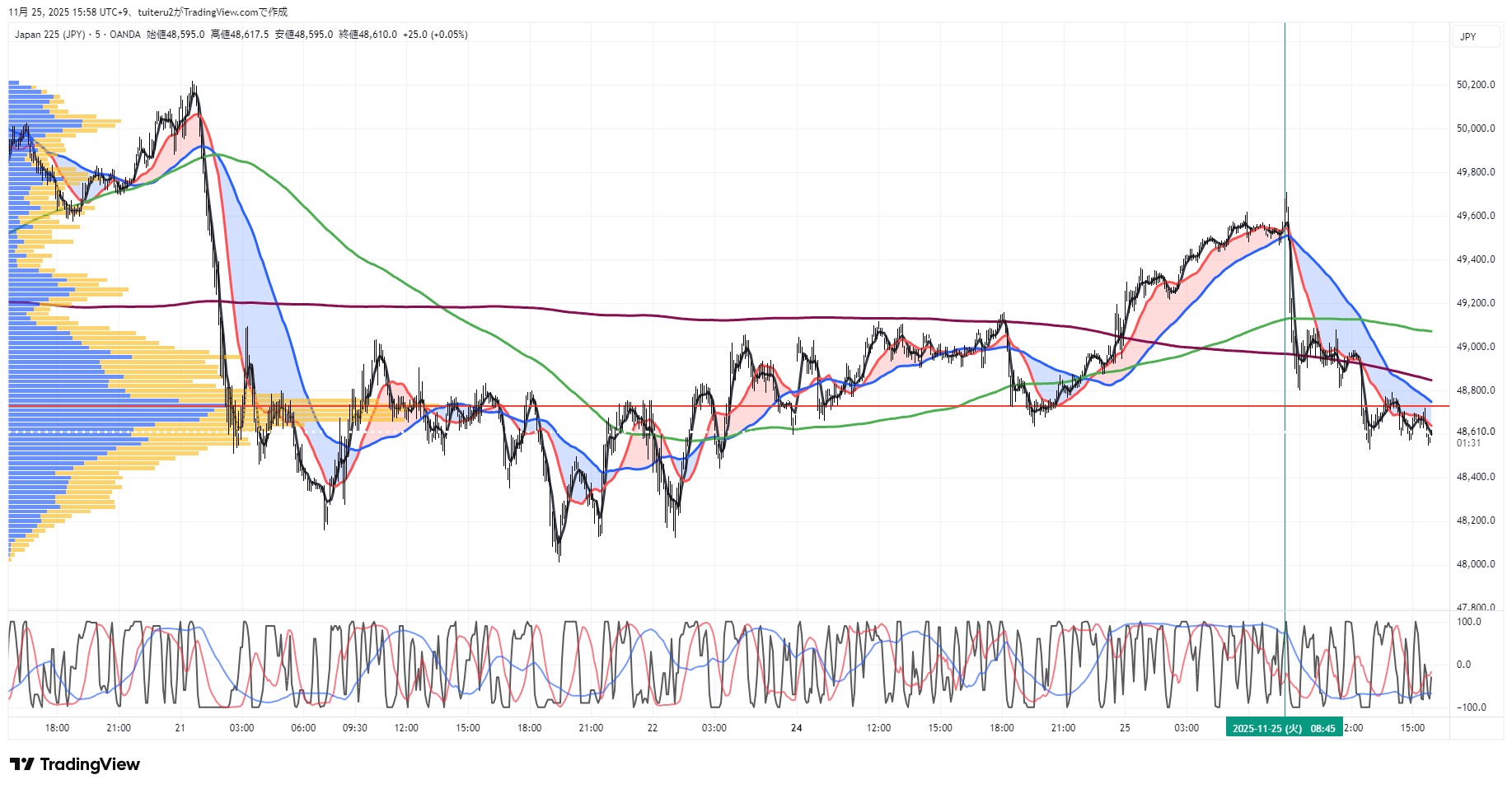 OANDAの『JP225』の 朝5:30時点 の 環境認識 と エントリーシナリオ です。