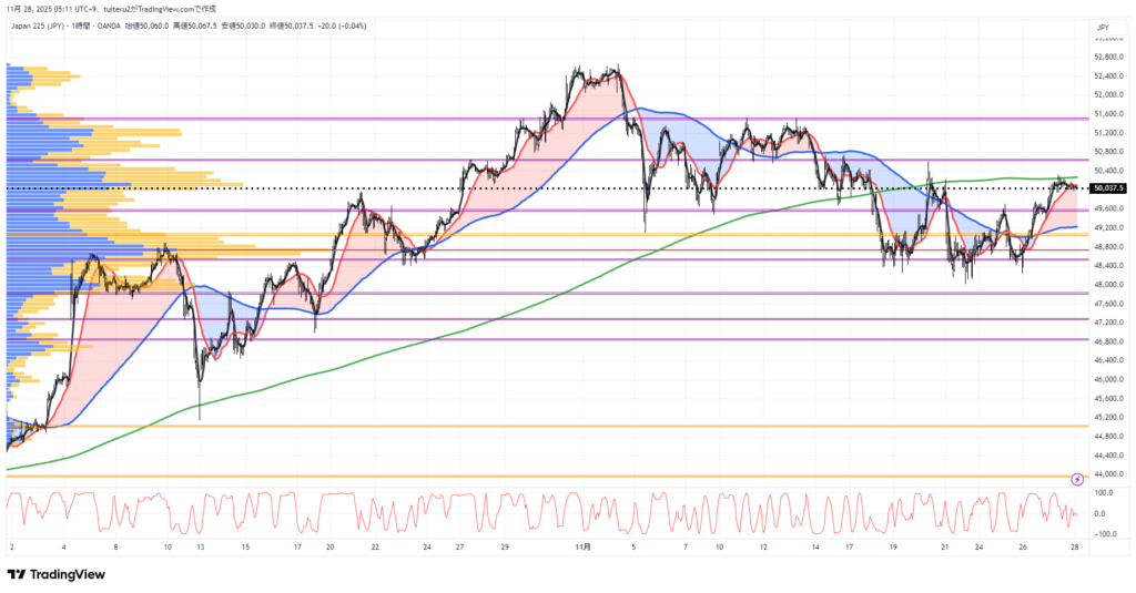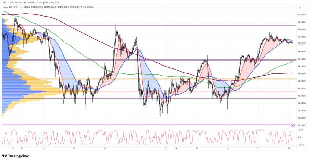 OANDAの『JP225』の 朝5:30時点 の 環境認識 と エントリーシナリオ です。