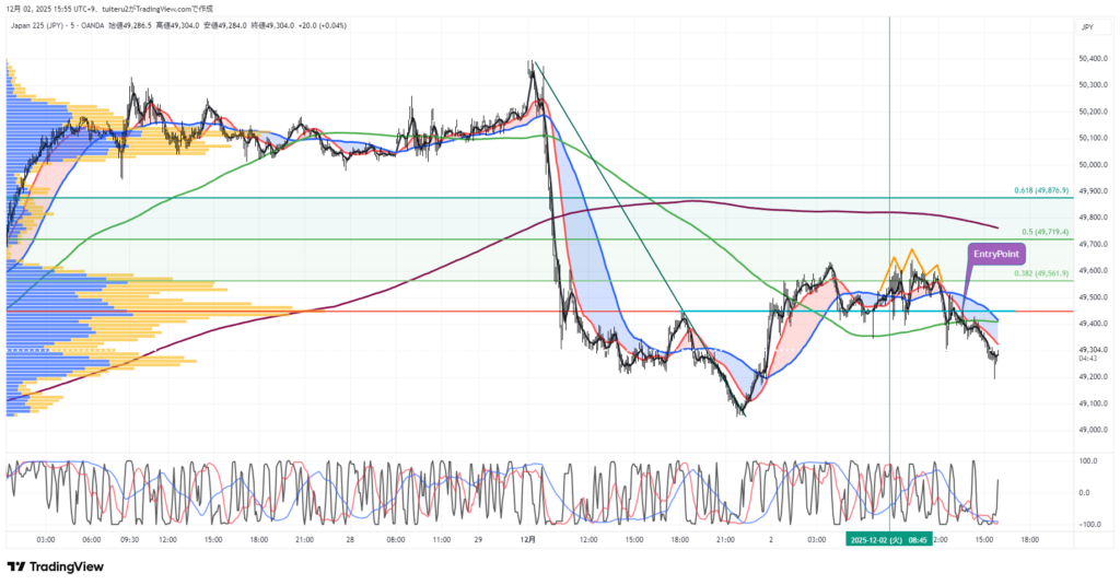OANDAの『JP225』の 朝5:30時点 の 環境認識 と エントリーシナリオ です。