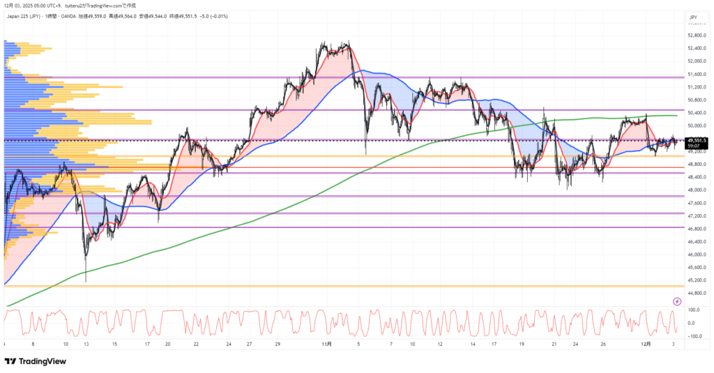 OANDAの『JP225』の 朝5:30時点 の 環境認識 と エントリーシナリオ です。