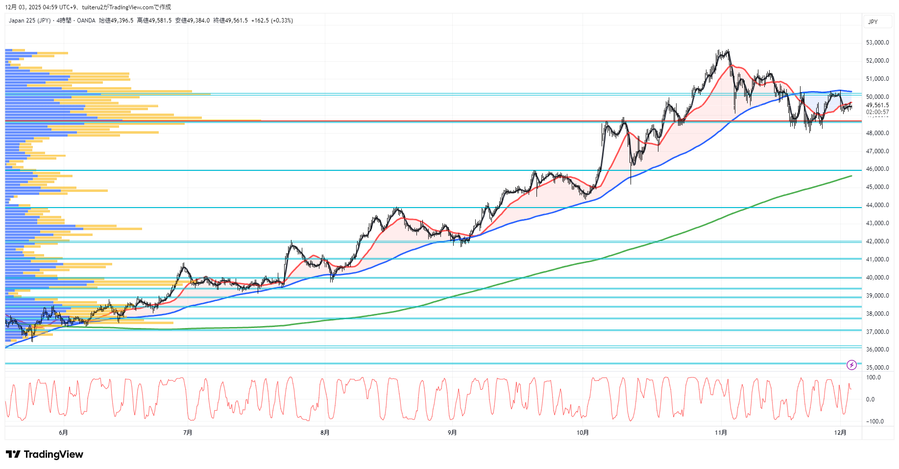 OANDAの『JP225』の 朝5:30時点 の 環境認識 と エントリーシナリオ です。