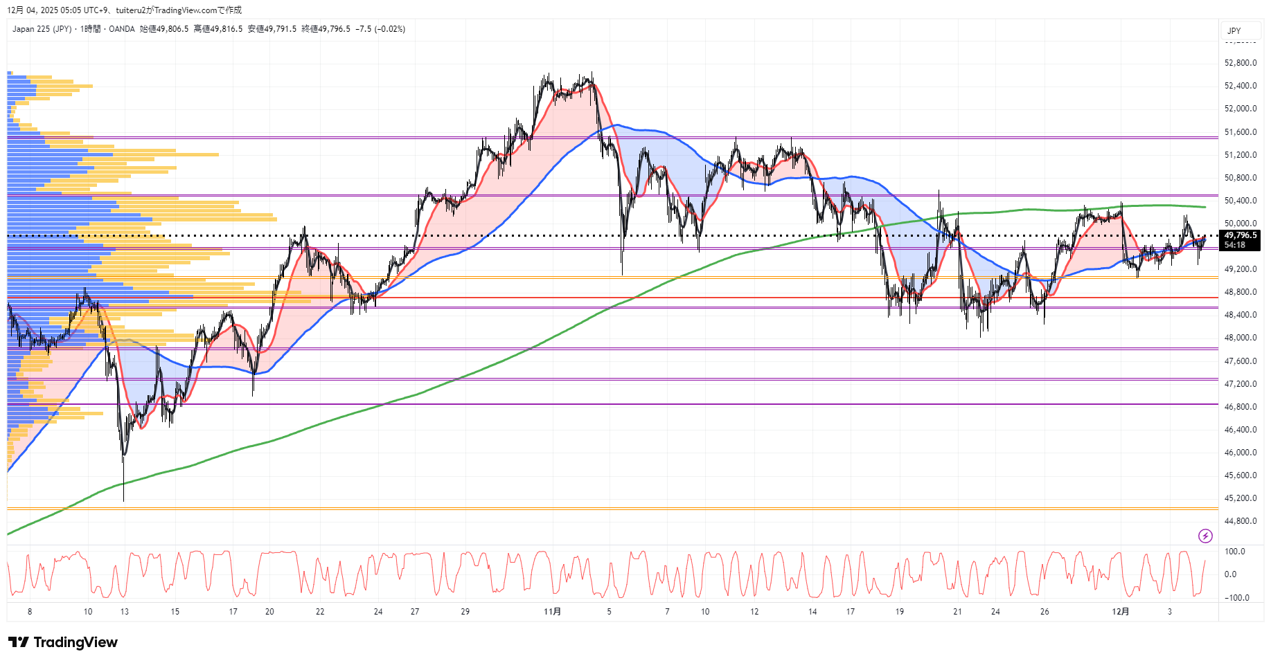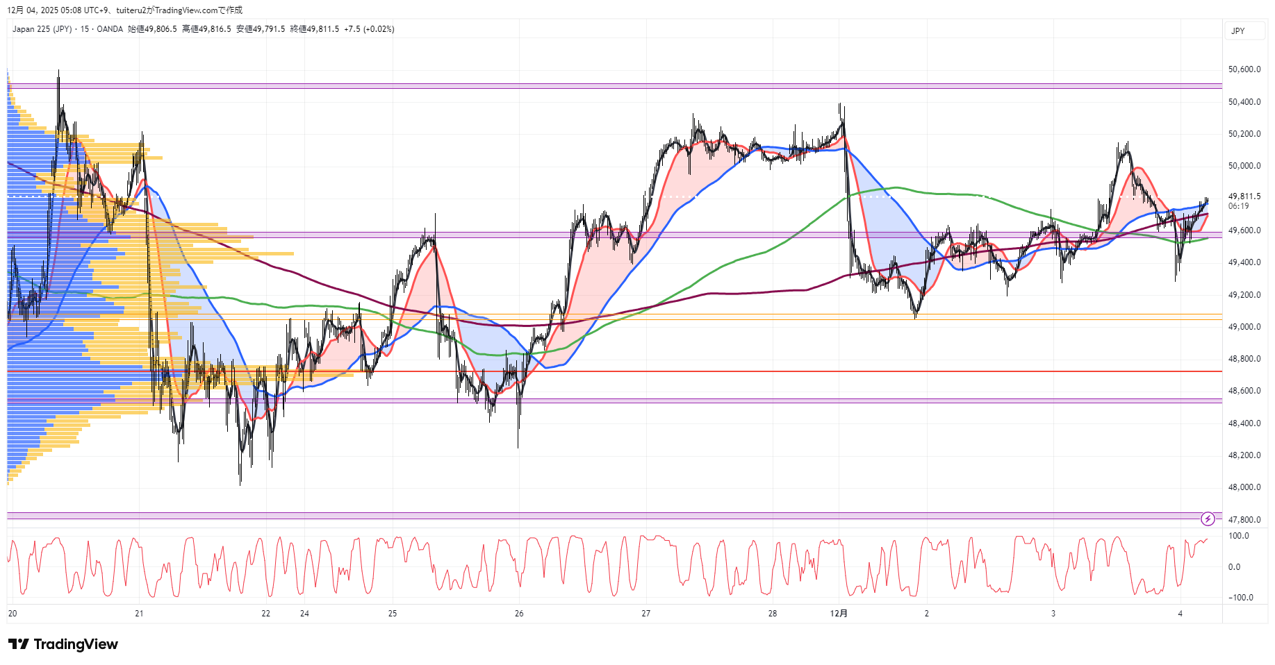 OANDAの『JP225』の 朝5:30時点 の 環境認識 と エントリーシナリオ です。