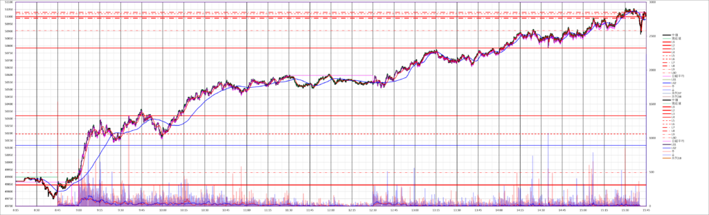 今日の225先物miniは、大幅上昇トレンドデイとなりました。