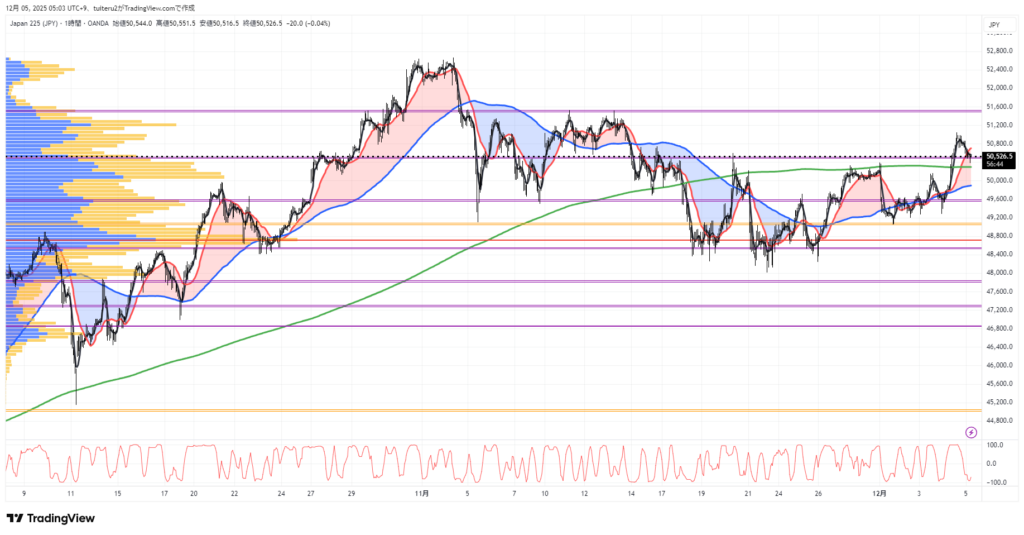 OANDAの『JP225』の 朝5:30時点 の 環境認識 と エントリーシナリオ です。