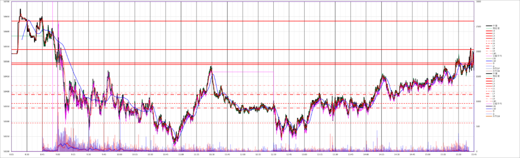 今日の225先物miniは、値幅の広いレンジ相場となりました。