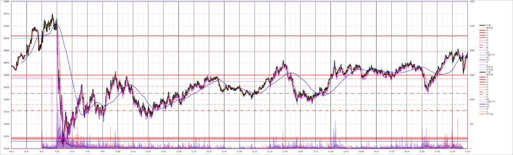 今日の225先物miniは、値幅の広いレンジ相場となりました。