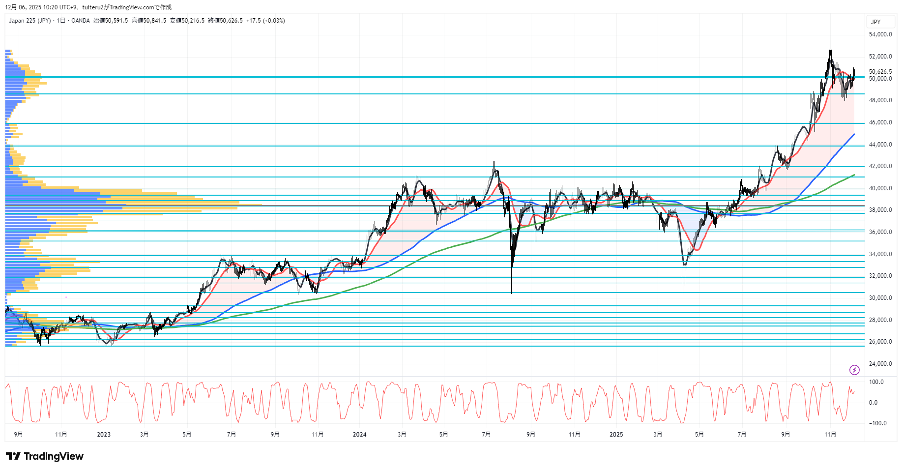 価格帯別出来高の山頂付近にいますので、ちょっと様子見です。