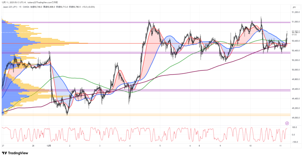 OANDAの『JP225』の 朝5:30時点 の 環境認識 と エントリーシナリオ です。