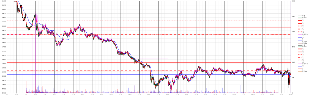今日の225先物miniは、前場は大幅下降トレンド、後場は今日の底値付近でレンジ相場となりました。